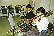 | パート練習の様子 | 中学高校と一緒に練習 | 先生の指導を仰ぐ |