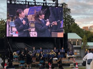 11月2日(土)、みなとラグビーまつり2019に参加いたしました。 港南、お台場、芝公園の3か所にて9月より開催しており、今回は芝公園の「ラグビーワールドカップ決勝戦のライブビューイング会場」にて、東京女子学園吹奏楽部が演奏させていただきました。
